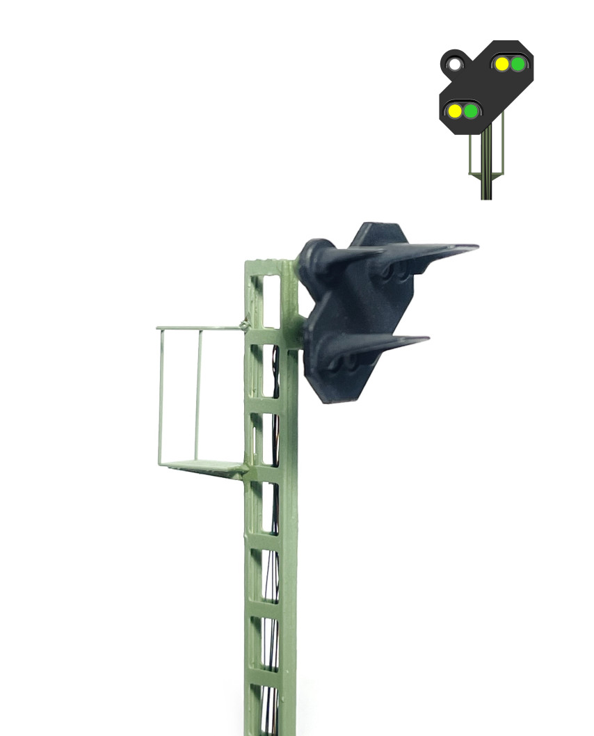 DB Signal H-V System - Exact H0 Scale (1:87) - Fine Scale product. - LEDs SMD. - Structure and handrails made of photoetched brass - Fine details made of 3D Printed high quality material. - Resistors included for connection up to 16 V (DC). |