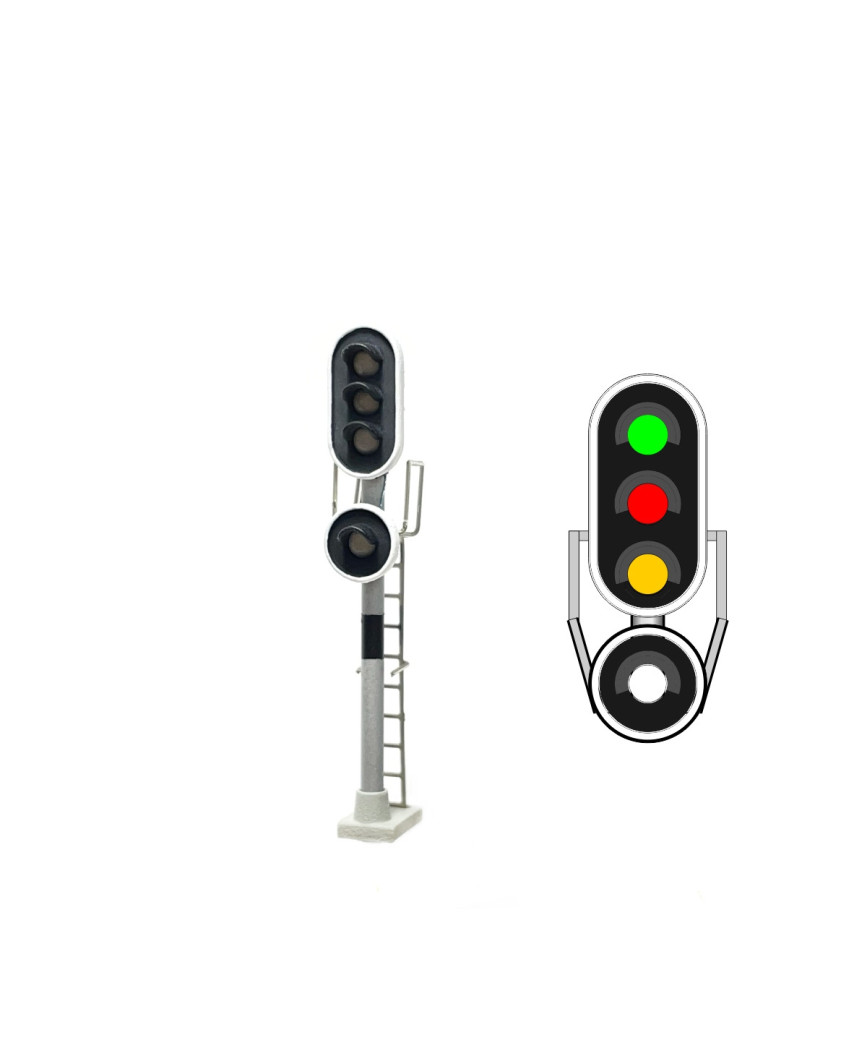 RENFE - 4 LED Signal (green/red/yellow/white) : - Exact N scale (1:160) - "Classic" product. - Contains SMD LEDs - Brass tube 0,8mm diameter. - Resistors included for connection up to 21 V (DC). |