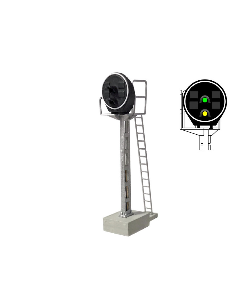 SNCF - Signal type Disk 2 lights (green/yellow) - Exact N scale (1:160) - Contains SMD 0603 SMD LEDs - Photo-etched brass pole,29mm high - Resistors included for connection up to 21 V (DC) |