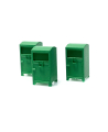 Los contenedores de ropa usada son un elemento habitual en calles, aparcamientos y espacios públicos de muchas ciudades. Este set reproduce tres unidades con el característico formato compacto y vertical de los contenedores textiles, perfectos para enriquecer entornos urbanos con un detalle fácilmente reconocible.
